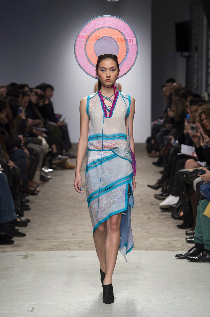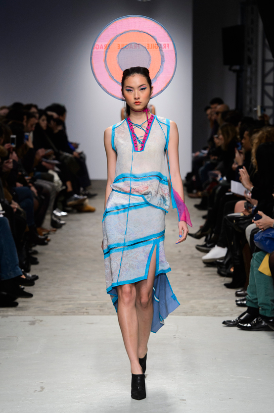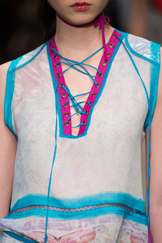 Printed silk chiffon top with hand made details.