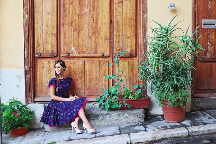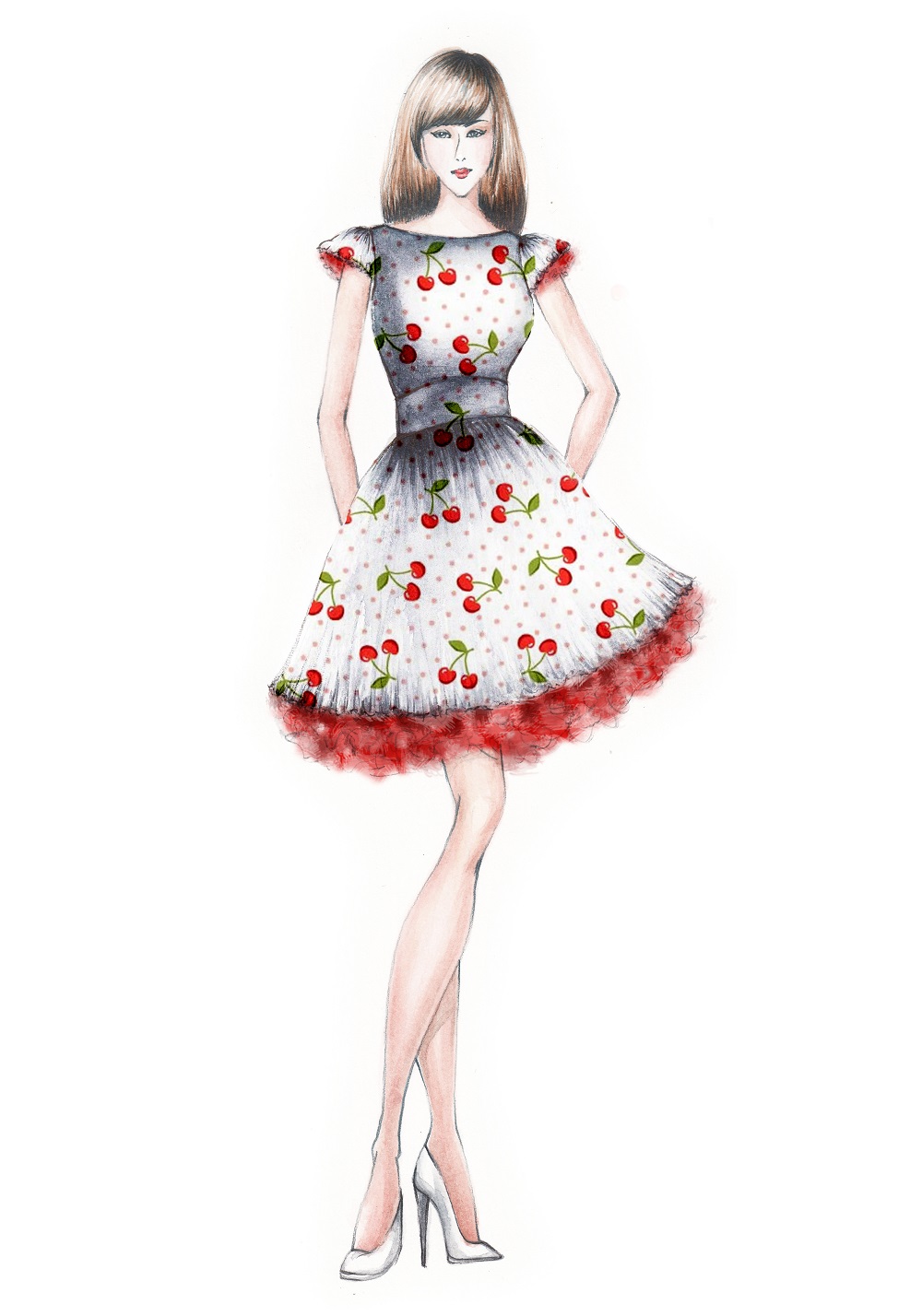 High quality, handcrafted dress, in the spirit of the 50s with cute cherry motive